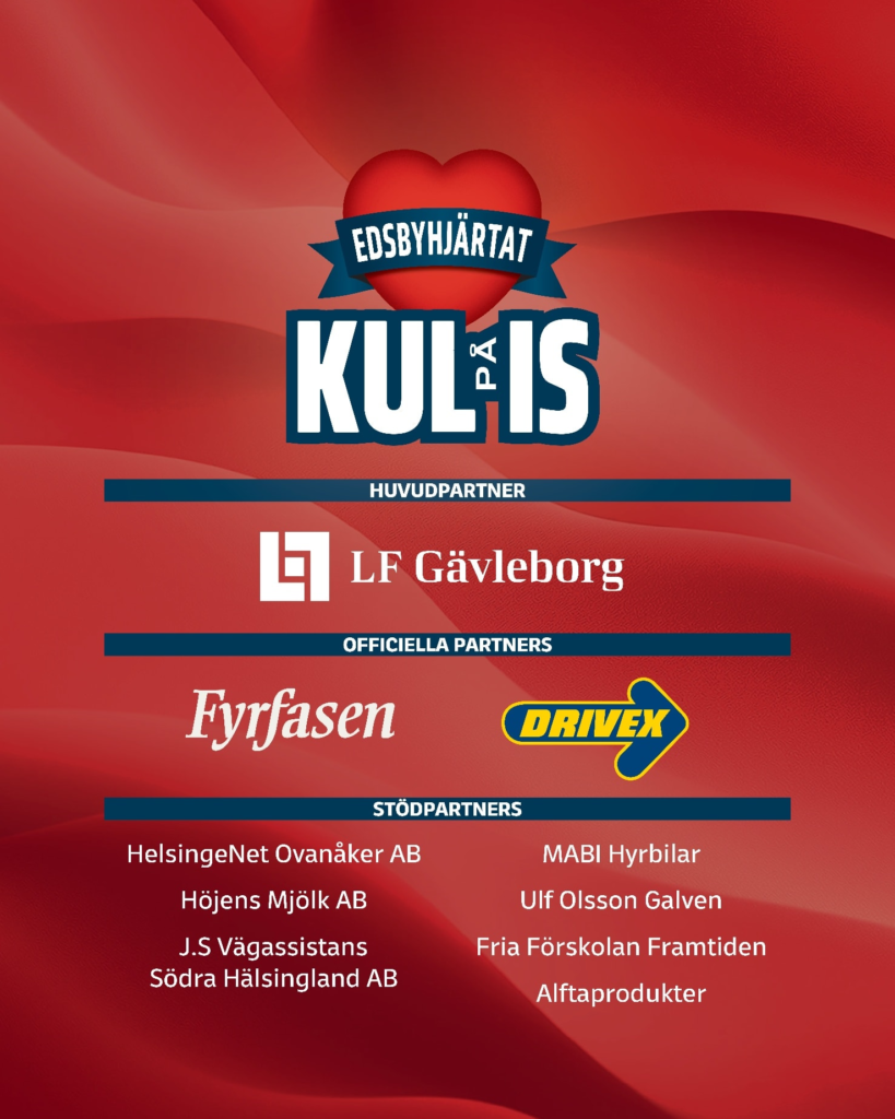 För att kunna genomföra detta på ett hållbart och bra sätt har vi fått stöd från flera partners som engagerat stöttar oss i Edsbyhjärtat – Kul på is.