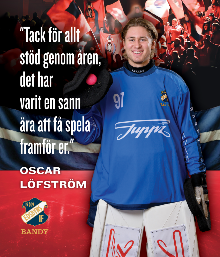 Nr 97 i mästarlaget, målvakten Oscar Löfström, väljer att lämna Edsbyn. Han gör det med tre SM-guld i bagaget. Alla som följer Edsbyn känner till Oscars kapacitet men som ett exempel kan nämnas att han klev in och höll nollan i kvartsfinal 2 mot Bollnäs – matchen som slutade 7-0.